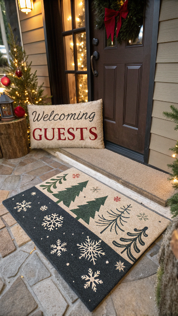 Welcome guests with holiday-themed doormats that reflect the spirit of the season. Choose mats with festive designs, such as snowflakes, Christmas trees, or cheerful greetings. Layering a holiday mat over a larger, neutral mat can create a stylish and inviting entrance.