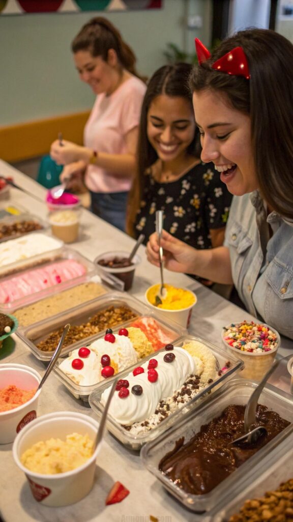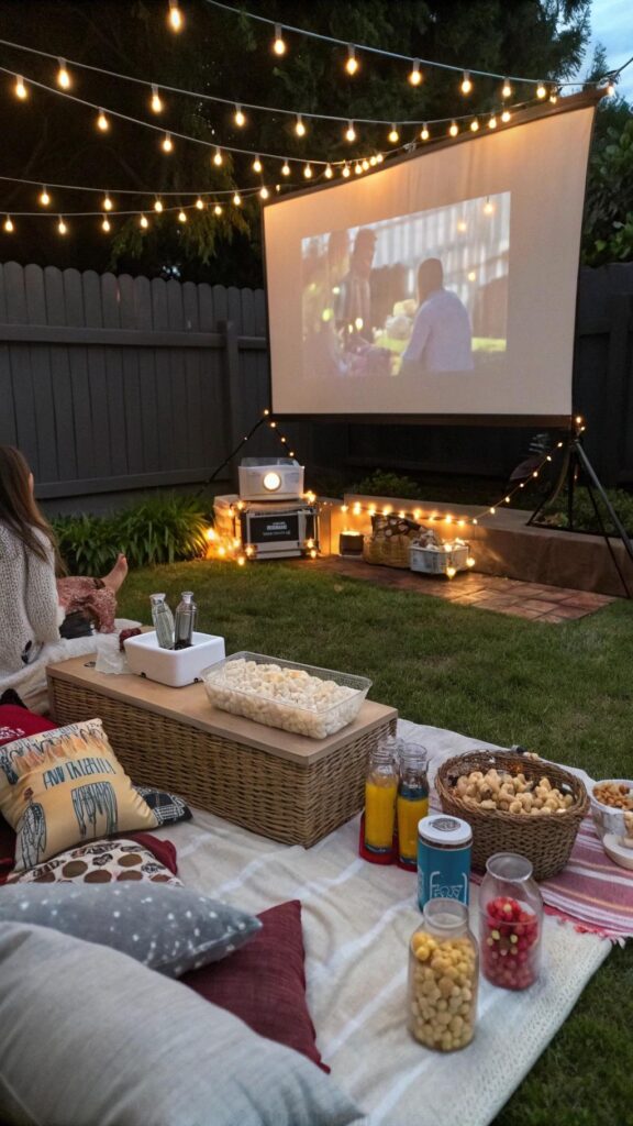 Don’t forget to provide popcorn, snacks, and drinks for a true cinematic experience. You can even set up a DIY snack bar with toppings for personalized treats. This idea works well for both small and large groups.