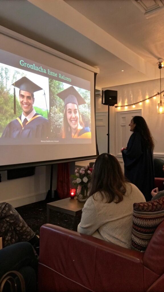 Create a slideshow of the graduate’s journey from childhood to graduation. Include photos, videos, and memorable moments to share with guests.