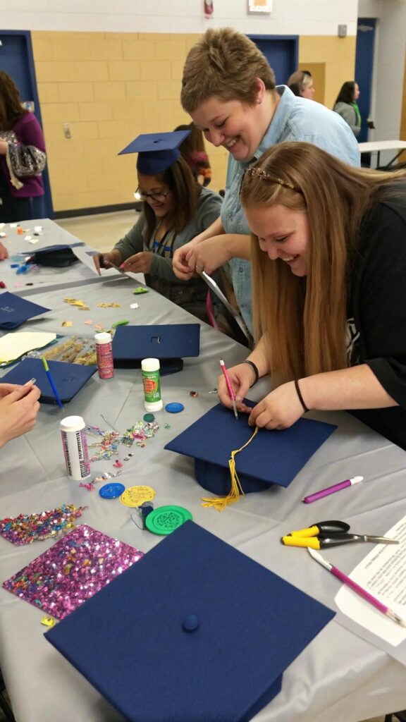 The decorated caps can serve as keepsakes or photo props. This idea is perfect for a smaller, more intimate gathering. It’s simple, fun, and adds a personal touch to the party.