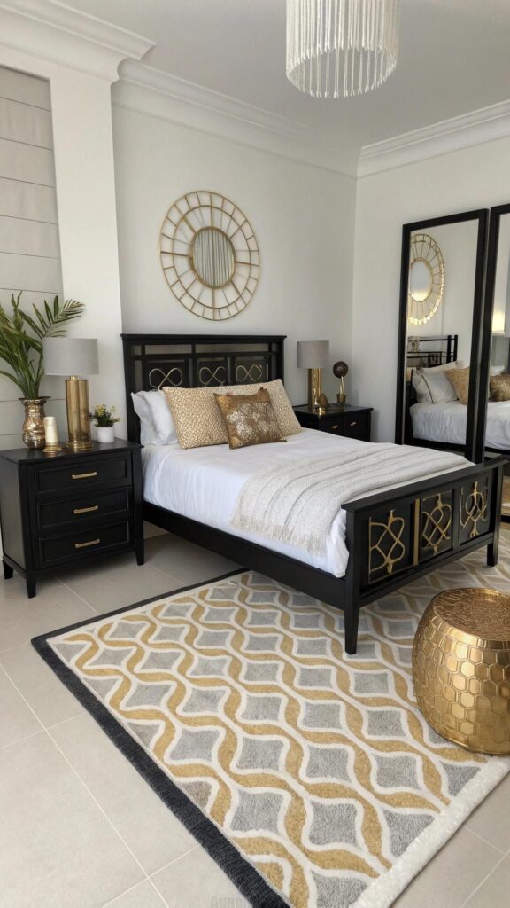 Pair a black bed frame with white bedding for a striking contrast. Add a few gold or silver accents for a touch of glamour. This style feels bold and sophisticated.