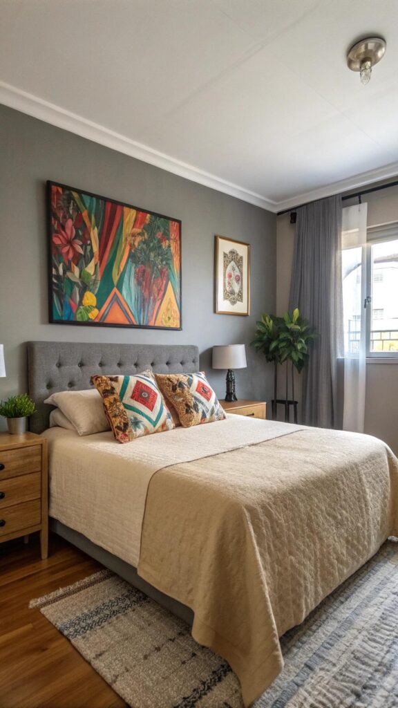 Neutral tones like beige, gray, and white create a calming base for your bedroom. Add pops of color through throw pillows, artwork, or a statement rug to keep the space lively. This balance ensures your room feels both serene and vibrant.
