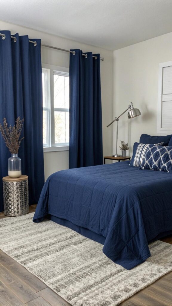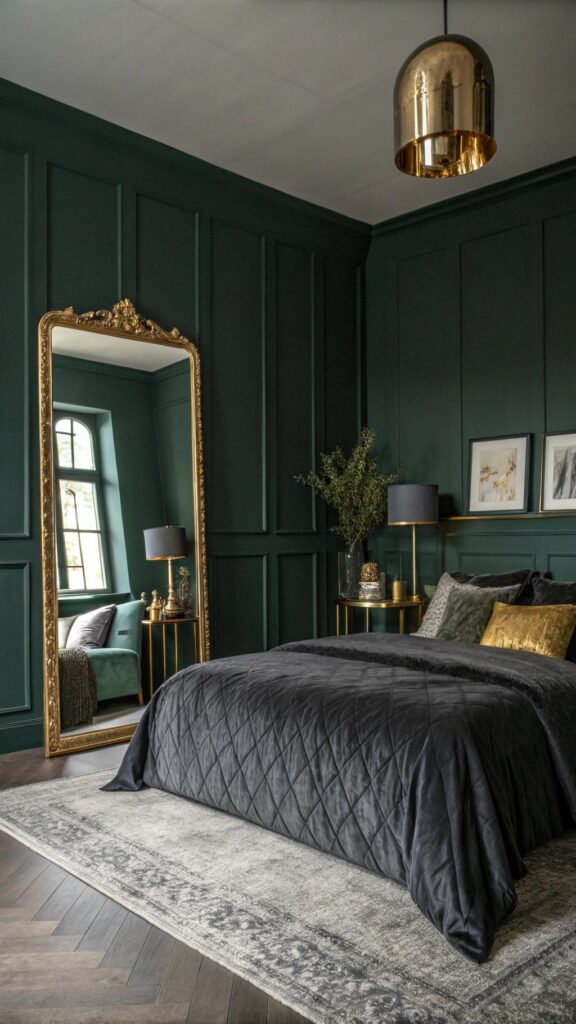 Pair dark walls with lighter bedding and metallic accents to balance the look. Add a few statement pieces like a bold mirror or artwork to keep the space from feeling too heavy.
