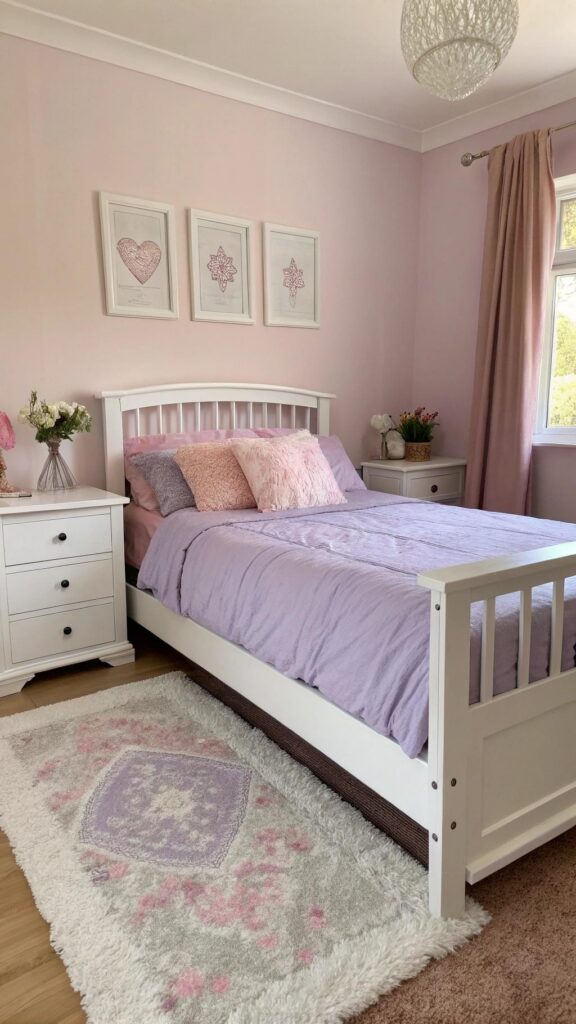 Pastel colors like blush pink, lavender, and mint green create a soft and feminine vibe. These shades are calming and perfect for a grown woman’s bedroom.