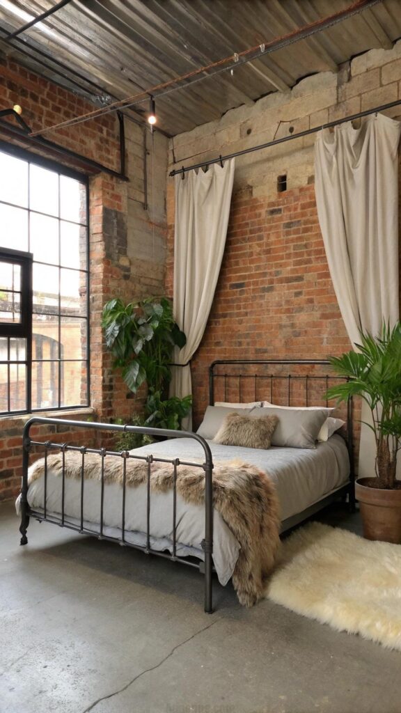 Industrial chic combines raw materials like metal and wood for a modern, edgy look. Exposed brick walls, metal bed frames, and concrete floors are key elements of this style.