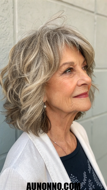 Mature women appreciate the feminine touch this brings. Highlights can enhance the waves for dimension. This cut grows out gracefully over time.