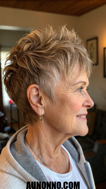Women over 70 enjoy the modern edge it brings. Trims maintain the uneven lengths. This style grows out without awkward phases.