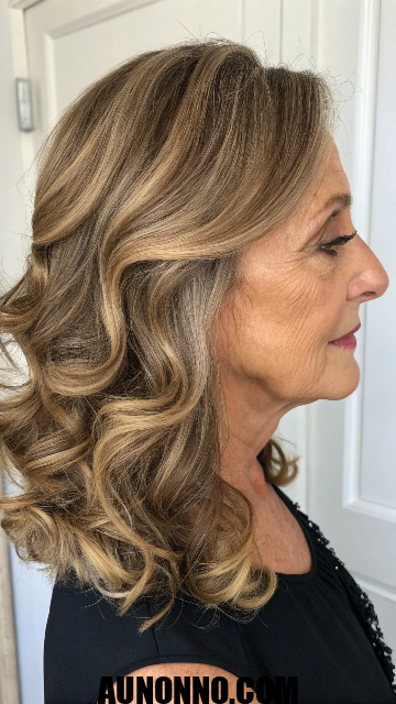 Shoulder-length waves offer gentle curves that soften facial lines. This style adds body to fine hair through loose curls. It allows versatility in updos or ponytails.