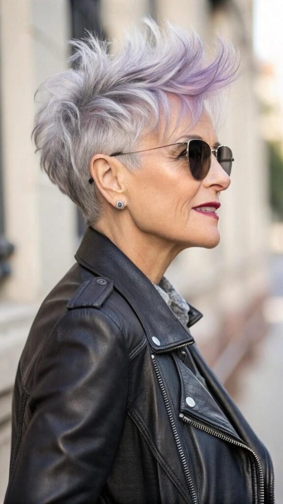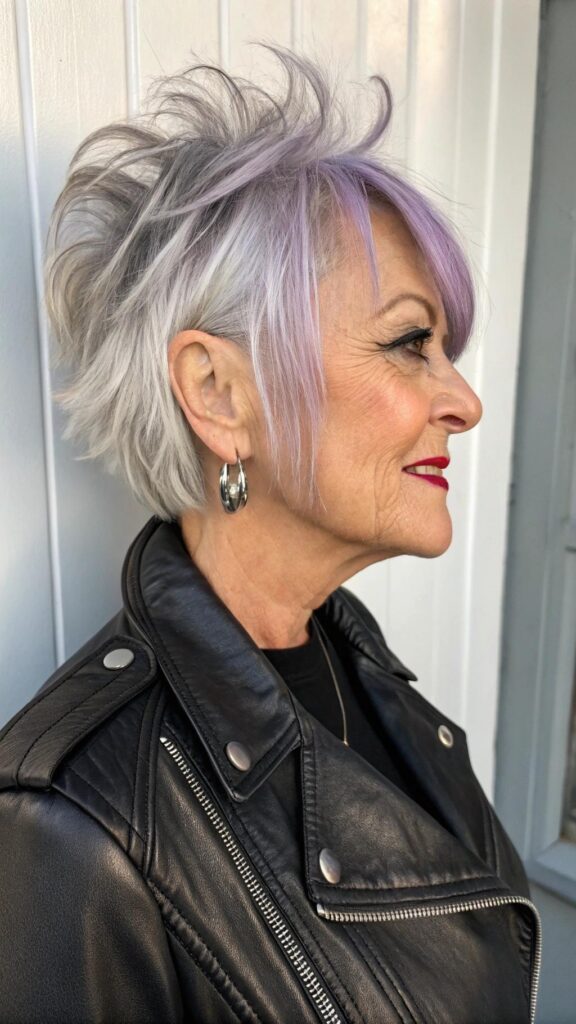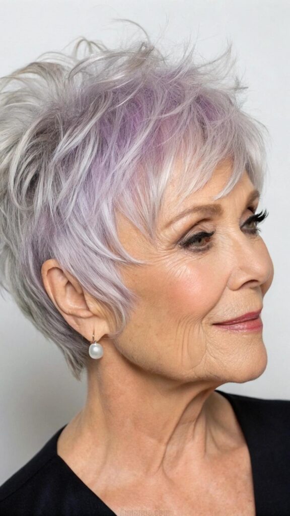 You can style a tousled pixie with a bit of pomade or wax for a tousled finish. This hairstyle works well with natural gray hair or can be enhanced with bold colors like platinum or pastel tones. It’s a great option for making a statement.