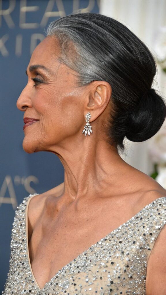 A sleek updo is a sophisticated choice for formal events or special occasions. This hairstyle is perfect for women over 70 who want to showcase their facial features and neckline. It’s also a great way to keep hair off your face during warmer months.