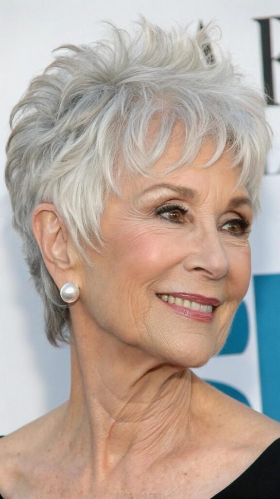 The tousled pixie is a relaxed and effortless hairstyle for women over 70. This look features messy, textured layers that create a playful and youthful vibe. It’s perfect for those who want a low-maintenance yet stylish option.