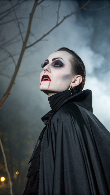 Vampires thrill with their dark allure. Start with pale foundation to mimic undead skin. Add red lipstick for bloody lips.