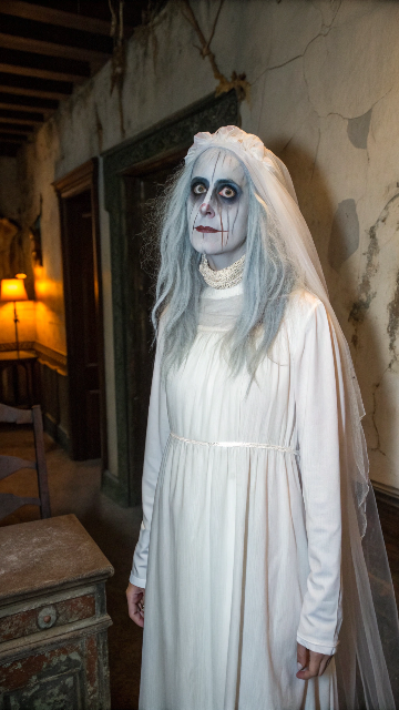 Ghosts haunt with transparency. Pale powder creates see-through effect. Blue veins add chill.