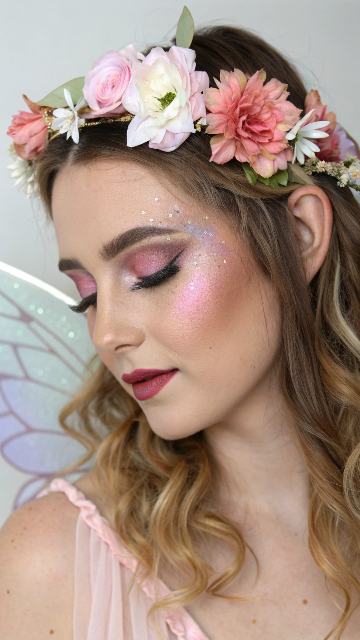 Fairies sparkle with magic. Dust glitter on cheeks. Wing designs near eyes add whimsy.