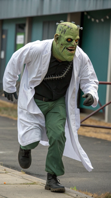 Monsters bolt with green skin. Stitches cross neck. Bolts stick sides.