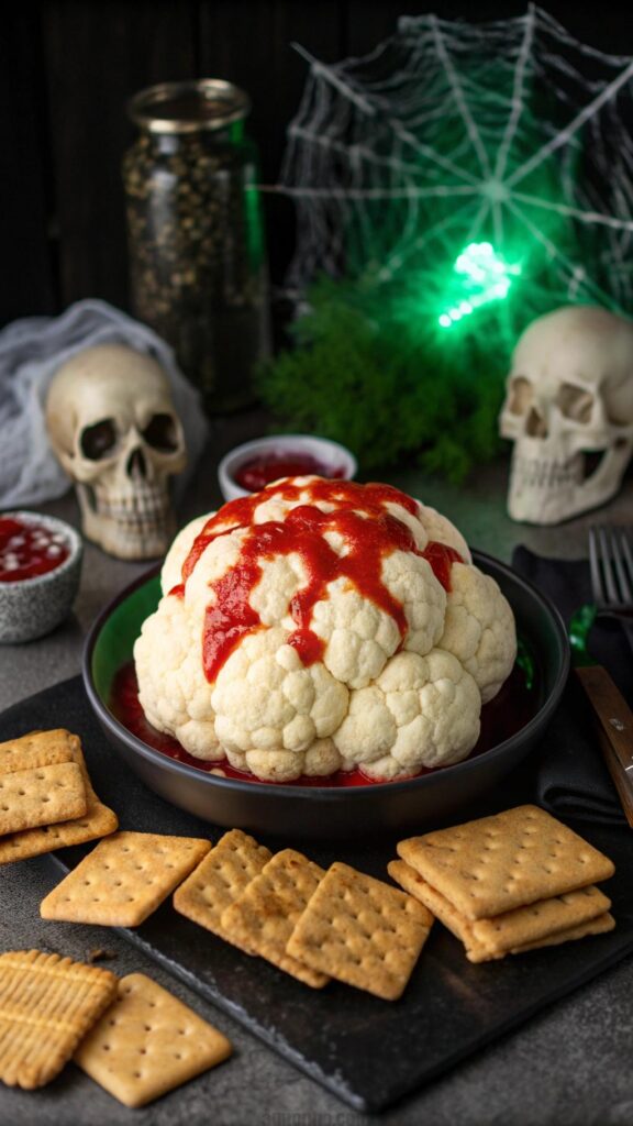 Zombie brain dip is a creepy party centerpiece. Mold cauliflower into a brain shape and coat with red sauce. Serve with crackers for dipping. This dip is savory and spooky. Guests love the gruesome presentation. It’s a healthy Halloween option. Use food coloring for a realistic brain look. Prep in advance for ease. This dish is a conversation starter.