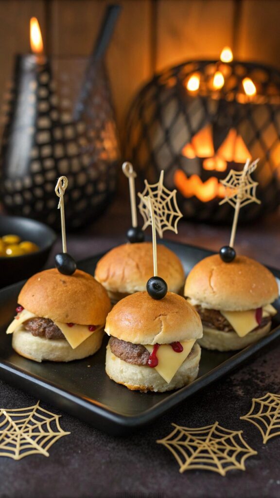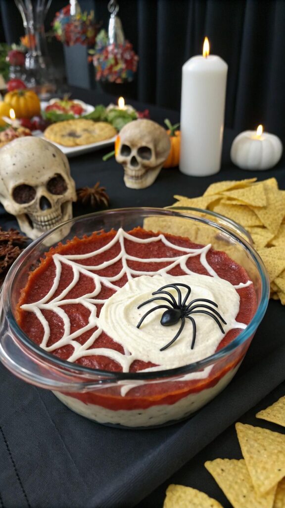 Spider web dip is a creepy crowd-pleaser. Layer refried beans, guacamole, and sour cream in a dish. Pipe sour cream in a web pattern for spooky effect. This dip is colorful and flavorful. Serve with tortilla chips for easy scooping. It’s a great make-ahead option for parties. Add a plastic spider for extra Halloween vibes. Use fresh ingredients for the best taste. Guests will love the festive presentation.