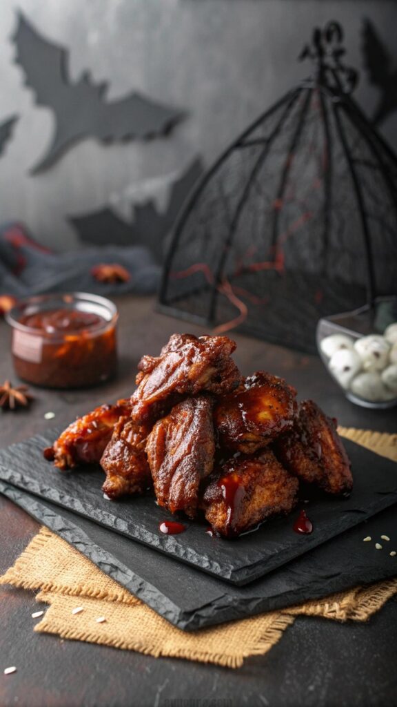 Bat wing chicken wings are a spooky party staple. Toss wings in black food coloring and BBQ sauce. Bake until crispy and juicy. These wings are bold and flavorful. Serve with ranch dip for contrast. They’re perfect for meat lovers. Use a black glaze for a dramatic effect. This dish is easy to scale for crowds. Guests will rave about the creepy look.