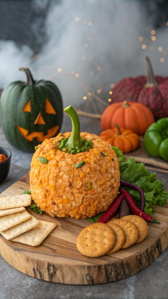 A pumpkin cheese ball adds festive flair to your table. Mix cream cheese with cheddar and spices for bold flavor. Shape into a pumpkin and coat with crushed nacho chips. This appetizer is creamy and crunchy. Guests can scoop it with crackers or veggies. It’s a perfect centerpiece for Halloween gatherings. Use a bell pepper stem to mimic a pumpkin top. Chill the cheese ball for a firm texture. This dish is easy to customize with your favorite spices.
