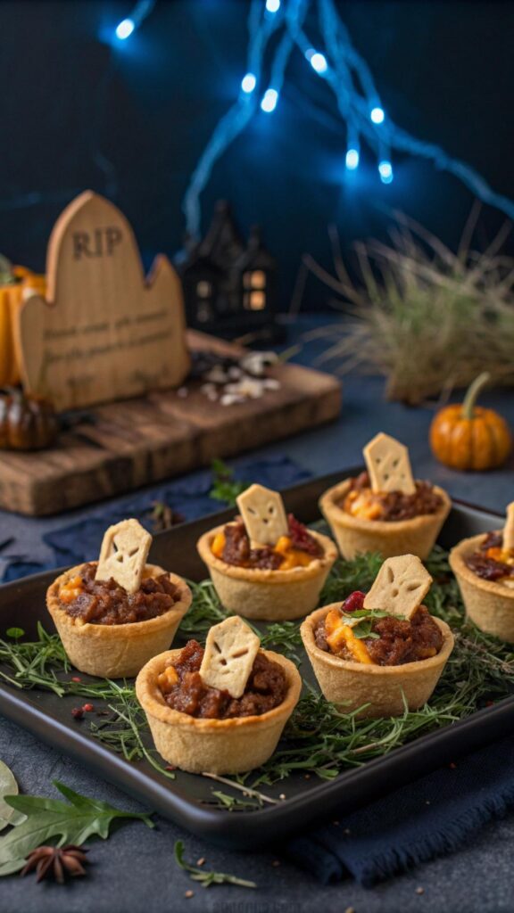 Graveyard taco cups are a savory Halloween snack. Fill tortilla cups with seasoned beef and cheese. Top with a cracker tombstone for effect. These cups are crunchy and flavorful. Serve warm for the best taste. They’re great for portion control. Use edible markers to write on the tombstones. This dish is quick to assemble. Guests will love the creative theme.