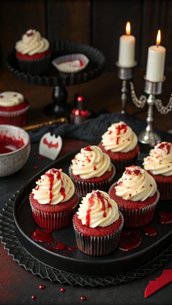 Vampire bite cupcakes are a dramatic dessert. Bake red velvet cupcakes for a bloody look. Add red gel for bite marks. These cupcakes are moist and sweet. Top with cream cheese frosting for richness. They’re perfect for Halloween parties. Use a toothpick to create realistic bite marks. Serve on a black platter for contrast. Guests will love the spooky design.