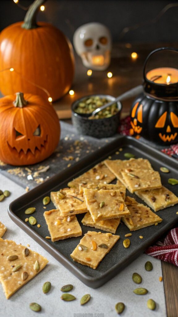 Pumpkin seed brittle is a crunchy Halloween snack. Cook sugar and pepitas into a hard candy. Break into pieces for easy serving. This brittle is sweet and nutty. Guests love the unique flavor. It’s a great make-ahead treat. Use a candy thermometer for perfect texture. Store in an airtight container. This snack is a festive hit.