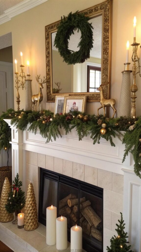 Add a large mirror or a piece of Christmas-themed art above the mantel to complete the look. Ensure all elements are securely placed and balanced. An elegant mantelpiece display truly captures the essence of Christmas.