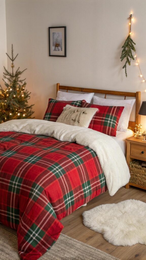 Complement the bedding with small bedside decorations like a mini Christmas tree or a scented candle. This extends the Christmas Home Decor theme into your bedroom. It ensures every part of your home feels festive.