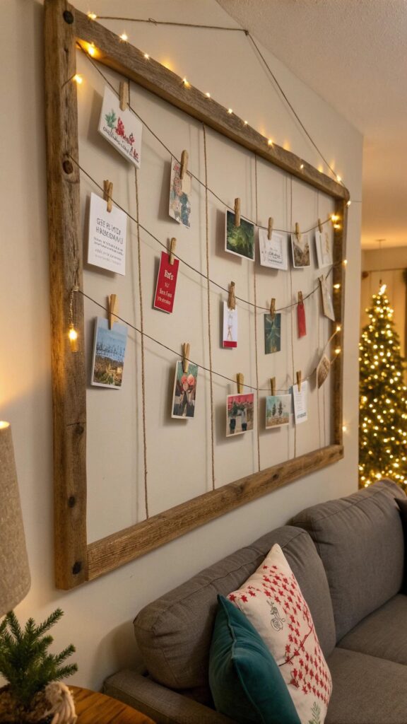Showcase your received Christmas cards as part of your holiday decor. This turns heartfelt greetings into a beautiful display. Use a string with small clothespins, a decorative board, or a wire frame.