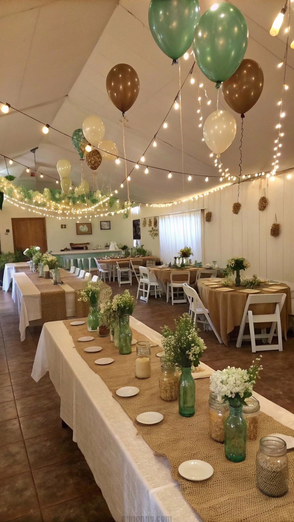 Use balloons, streamers, and table settings that reflect your chosen theme. For a rustic theme, consider using burlap table runners, mason jars for centerpieces, and fairy lights to create a cozy ambiance.