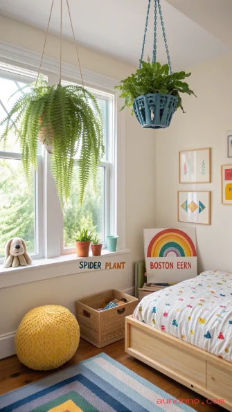 Hanging plants in a child’s room adds color, life, and a sense of wonder to their everyday environment. The key is to choose non-toxic, safe plant varieties since children may be curious and touch or taste the plants. Spider plants, Boston ferns, Christmas cactus, and prayer plants are all non-toxic and safe choices for kids’ rooms.