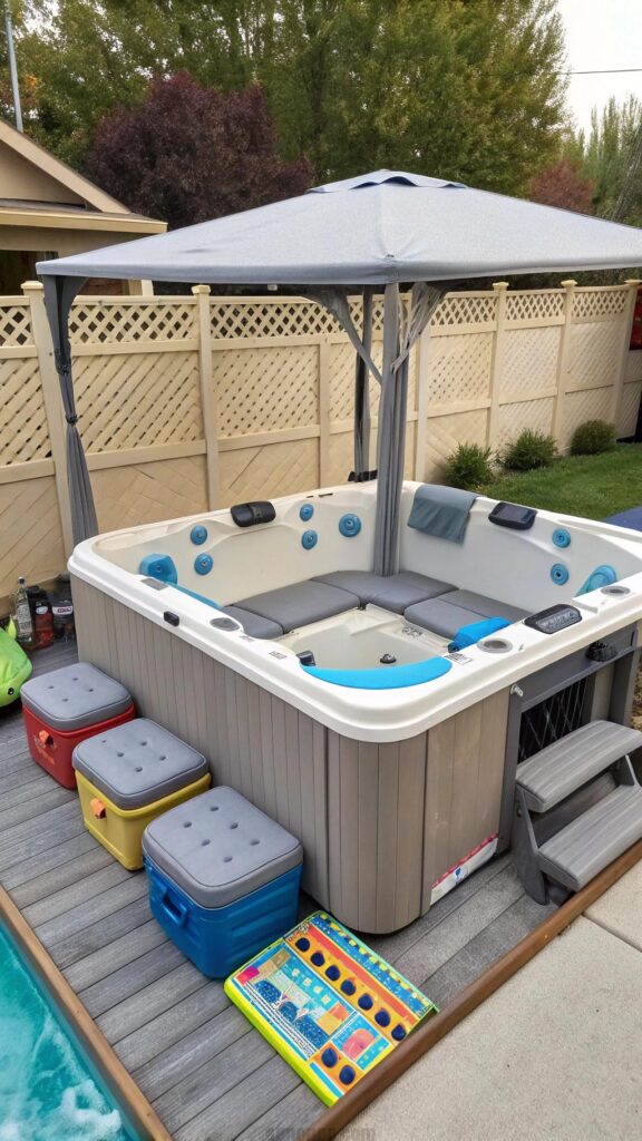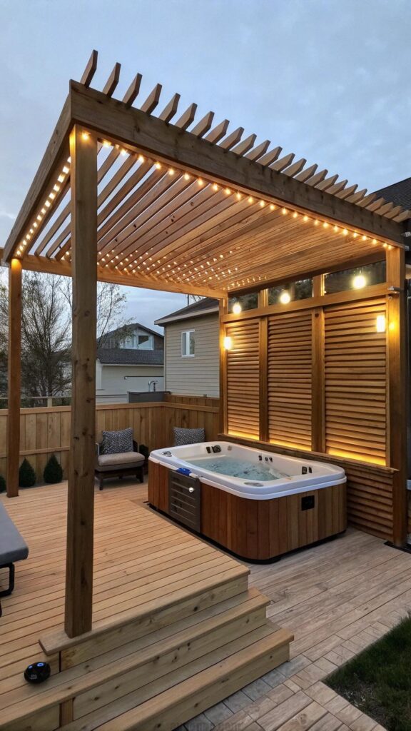 Installing a pergola over your outdoor jacuzzi creates an elegant and practical enhancement to your backyard design. The structure provides privacy, shade, and year-round usability while maintaining an open-air feel. You can customize pergola designs to match your home’s architectural style.