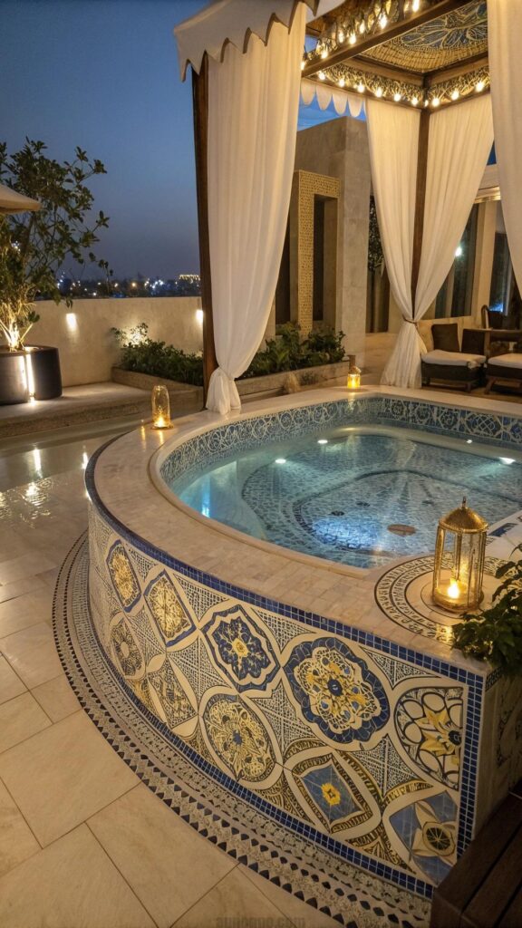 Mosaic finishes adapt to any architectural style from contemporary to traditional designs. The tiles maintain their vibrant colors without fading or warping over time. Your mosaic jacuzzi becomes a centerpiece that rivals the most exclusive resort installations.