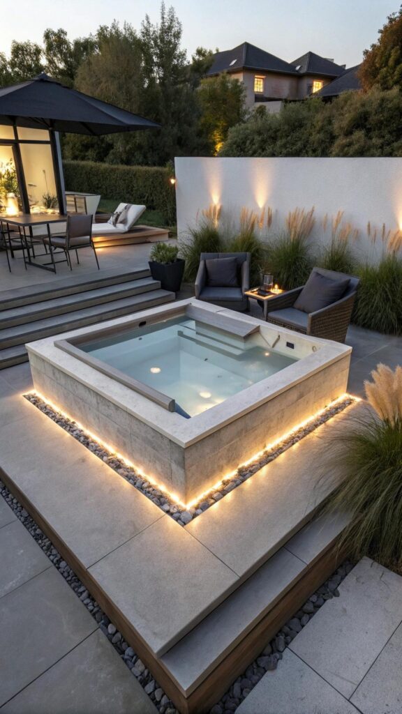 The contemporary aesthetic of concrete jacuzzis complements modern home designs perfectly. These installations offer customizable heights and can be integrated with built-in seating areas. The sleek lines create a sophisticated focal point that enhances your outdoor living experience.