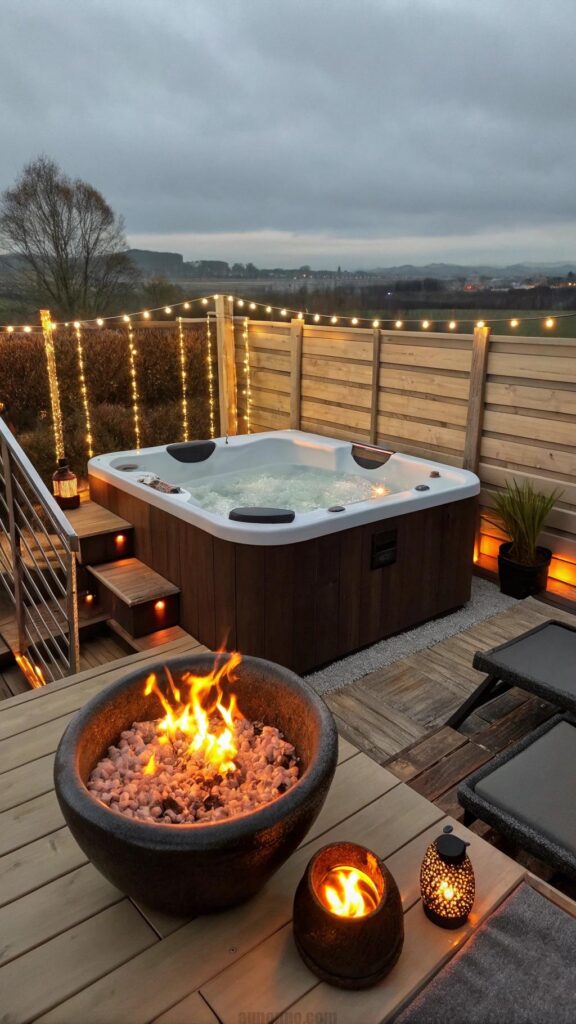 Combining jacuzzis with fire features creates dramatic contrasts between water and flame elements. Strategic placement allows users to enjoy radiant heat while soaking or provide warming stations for cooling off between soaks. The dual elements extend usable seasons and create magical evening atmospheres.