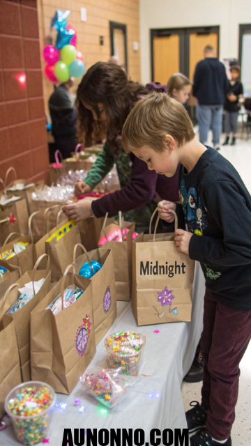 Give each child a bag filled with treats, glow toys, and confetti. Add numbers for them to open every hour. It keeps the excitement alive until midnight.