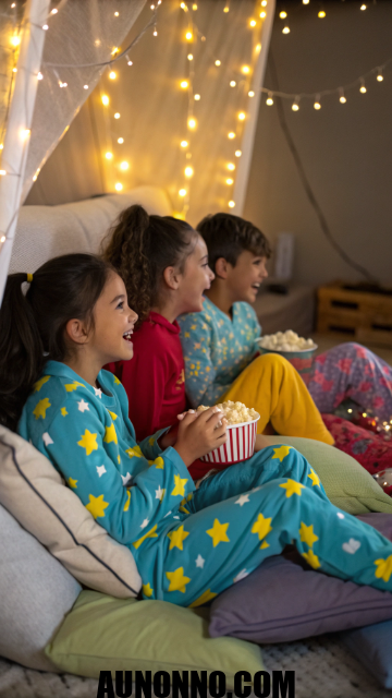 Let the kids wear their favorite pajamas. Add cozy blankets, soft pillows, and fairy lights for a sleepover vibe. The comfort makes everyone relaxed and happy.