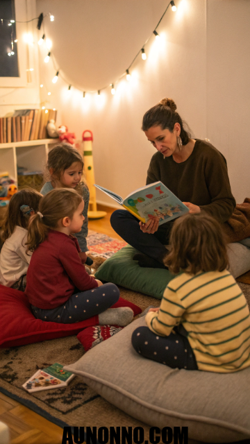 Storytime creates balance after active games. Parents can take turns reading to keep it engaging. Dim lights and background music enhance the feel.