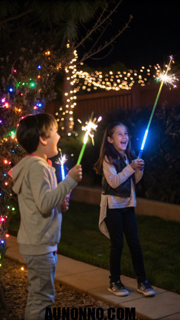 Replace loud fireworks with kid-safe light shows. Use LED sparklers, glow sticks, and bubbles to create a bright outdoor experience. It gives the same magic without the noise.