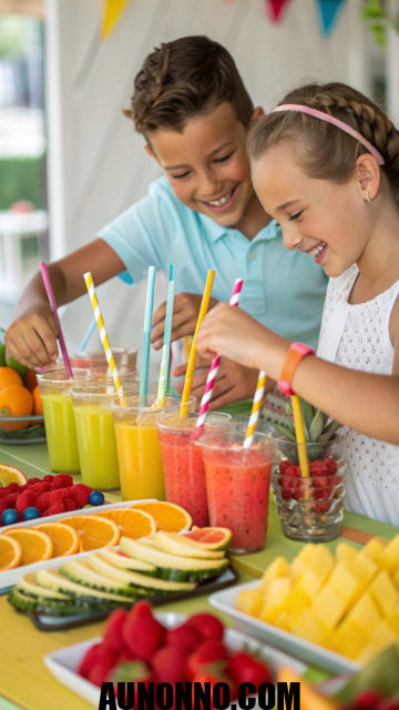 Provide fun cups, straws, and fruit garnishes. Let them choose flavors and give them creative names. It’s safe, tasty, and entertaining.
