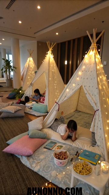 Set up small indoor tents with fairy lights. Add sleeping bags, pillows, and cozy blankets. Kids love having their mini hideouts.