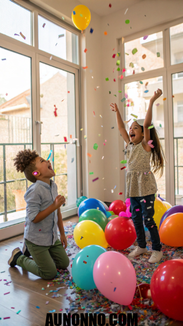 Kids love balloons, and nothing beats the magic of a balloon drop. Fill a bag with balloons and hang it above the party area. When the countdown starts, everyone waits with excitement.