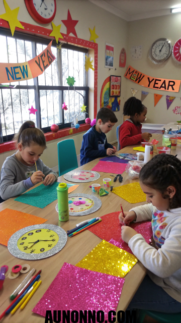Posters with “Happy New Year” can decorate the space. Parents can join to make it a bonding moment. Each kid leaves with handmade decorations.