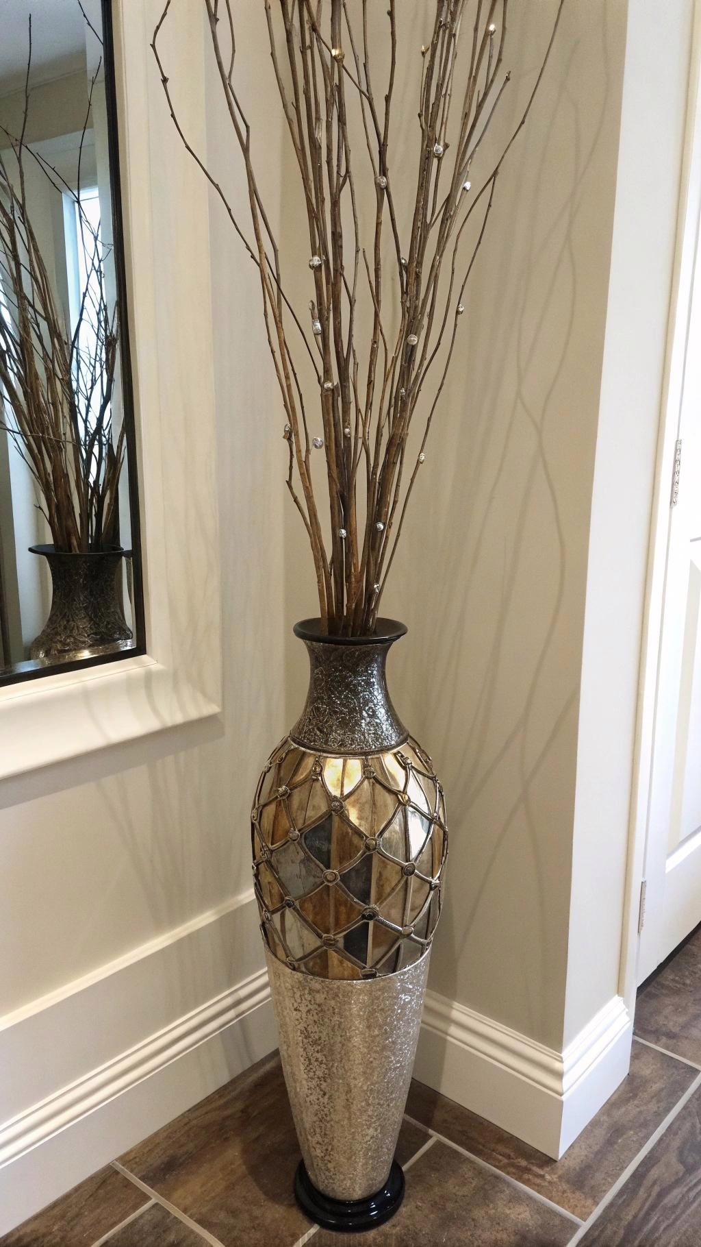 Don’t be afraid to mix materials when decorating with large floor vases. Combining glass, metal, and ceramic can create a visually interesting arrangement that adds depth to your decor. For example, a glass vase filled with metallic branches can create a stunning contrast that draws the eye.