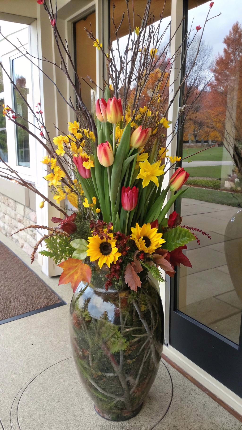 Tall flowers like sunflowers, lilies, and branches of greenery work well in large floor vases. Choose flowers that complement the size and shape of the vase.