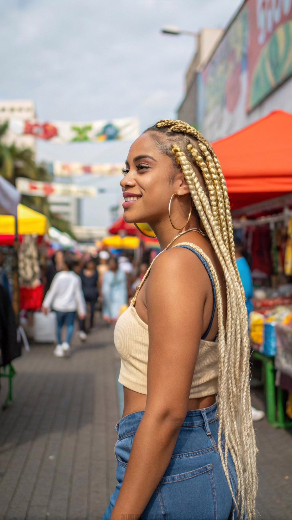 I switched things up with butter blonde cornrows, and they’re a total vibe. I bleach my hair to a creamy butter blonde, then braid it into tight, neat cornrows that hug my scalp. The latina energy comes from the bold color paired with my cultural braiding style.