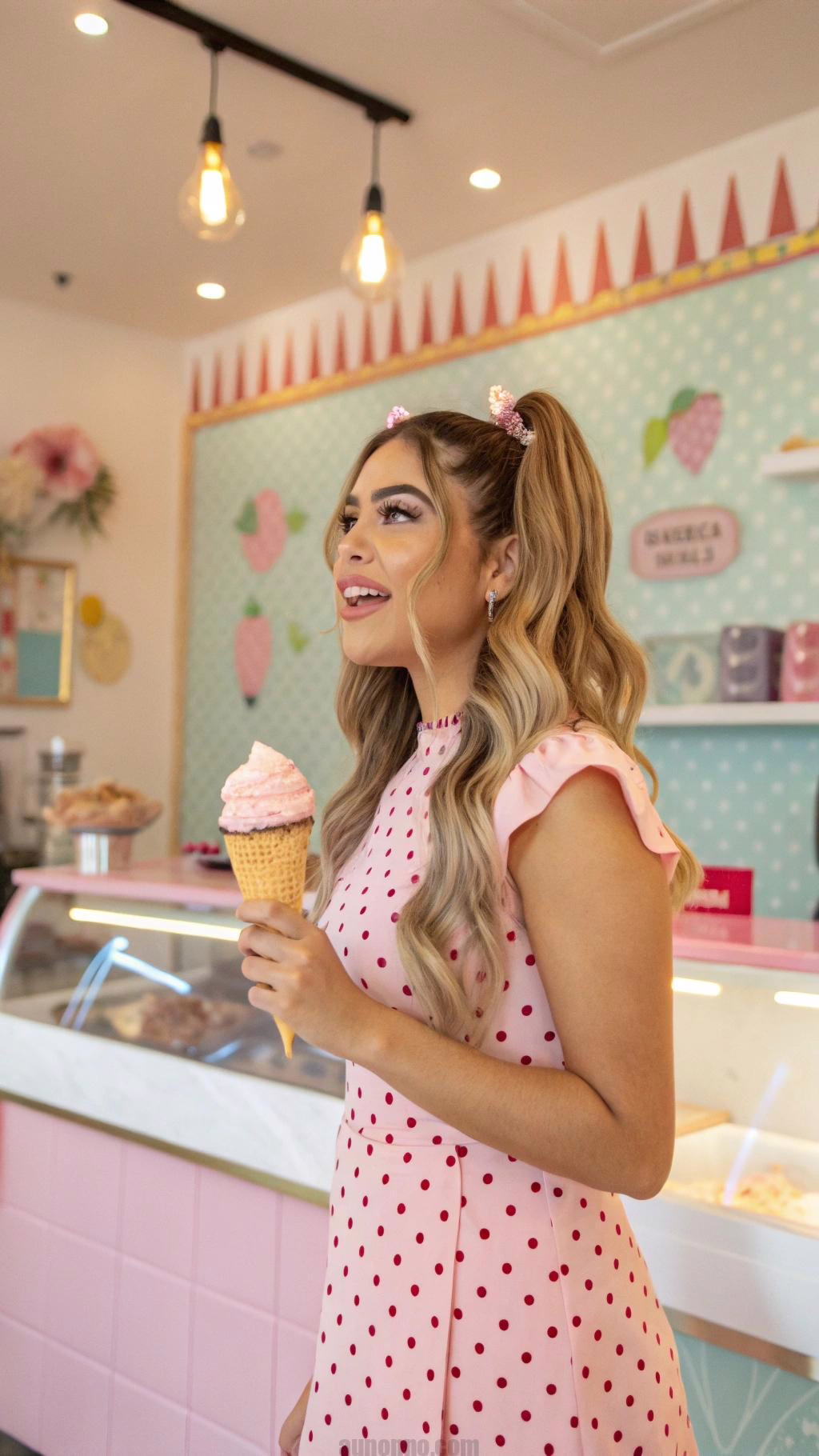 I tried caramel blonde pigtails for a cute, nostalgic vibe. I dye my hair a rich caramel blonde, then split it into two low pigtails that hang past my shoulders. My latina energy shines with the loose waves I add for texture.