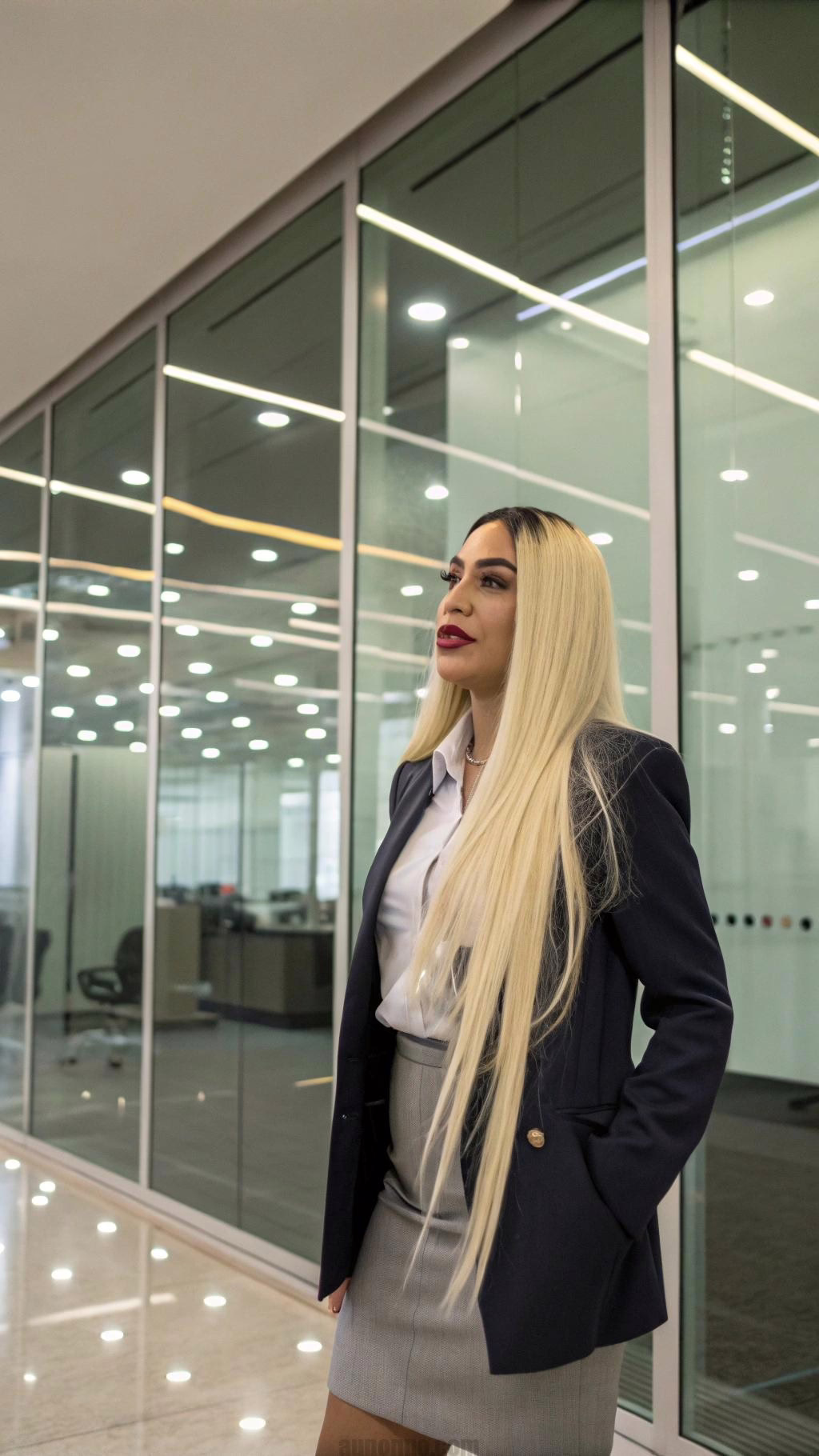 I twisted my hair into a creamy blonde updo for a sleek, classy look. I lighten it to a creamy blonde shade, then twist sections into a low, elegant bun at the nape of my neck. The latina touch comes from the glossy finish I add for extra shine.