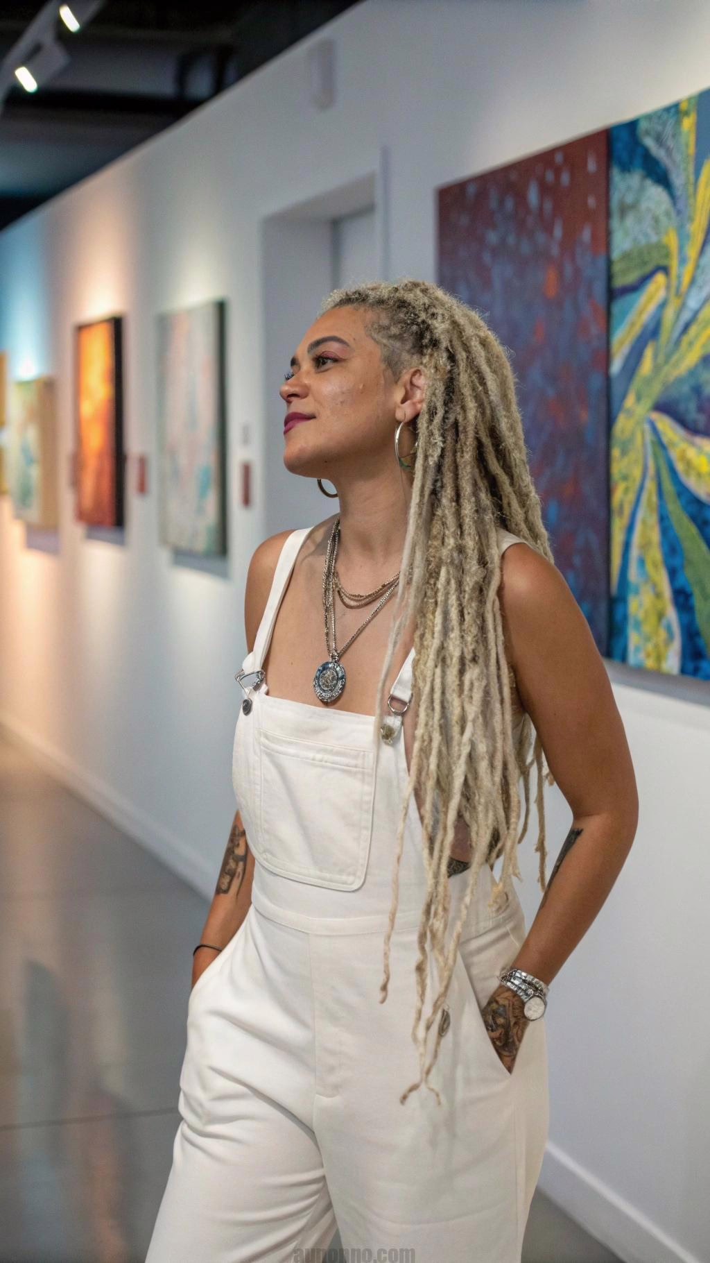 I went all out with icy blonde dreadlocks, and they’re a total statement. I lighten my locs to an icy blonde shade, keeping them thick and uniform for a striking effect. The latina vibe comes from the way I let them fall naturally, full of personality.