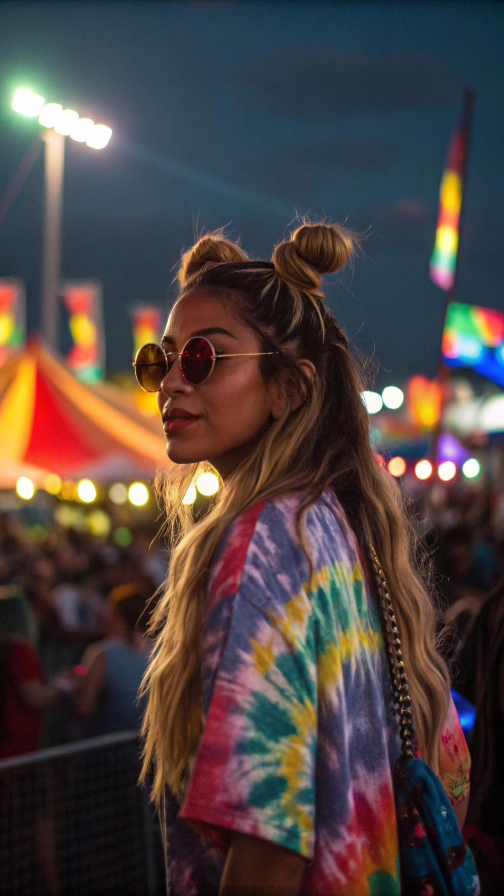 I had a blast with toffee blonde space buns for a quirky, youthful look. I dye my hair a sweet toffee blonde, then split it into two high buns on top of my head with the rest hanging loose. The latina energy pops with the playful volume I tease into each bun.